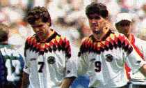 Das Foto zeigt Klaus P. zusammen mit Andi M., seinem damaligen Nationalelf Kollegen, in den Farben der BRD. Da er jedoch eine Mitgliedschaft im A-Team anstrebte, hängte Klausi seinen Job als hauptberuflicher Knochenbrecher und Feind aller Stürmerschienbeine in der Nationalelf an den Nagel um seine Zeit daraufhin mit der Zivilversager Selbsthilfegruppe zu verbringen.